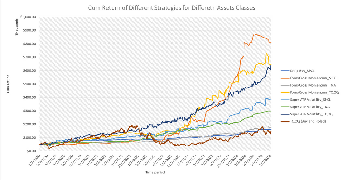 Every asset class has distinct characteristics. We provide detailed performance metrics—including returns, drawdowns, and Sharpe ratios—to help you choose the right strategy for each market condition. Our tables and graphs make it easy to see which strategies perform best for specific assets.